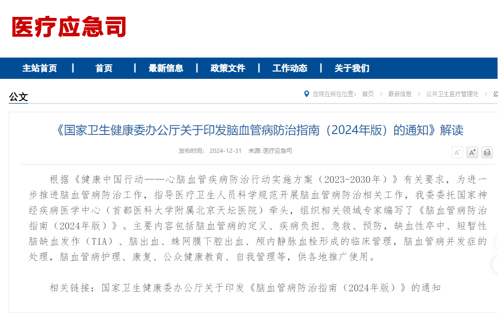 国家卫生健康委在发布指南的同时,也强调了各地要充分发挥各级医疗卫生机构引领带动作用,加强对防范脑血管病及其相关危险因素的健康科普宣教,引导公众提高脑血管病防治意识和技能,不断提升人民群众健康素养。
