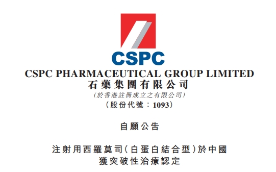 (1093.HK)宣布,本集团开发的注射用西罗莫司(白蛋白结合型)(下称:该产品)获中华人民共和国国家药品监督管理局授予突破性治疗认定,拟定适应症为单药用于恶性血管周围上皮样细胞瘤 (PEComa) (下称:该适应症)。