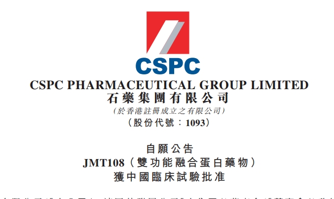 (1093.HK)宣布,本集团开发的I类新药双功能融合蛋白药物 JMT108(下称:该产品)已获中华人民共和国国家药品监督管理局批准,可在中国开展临床试验。
