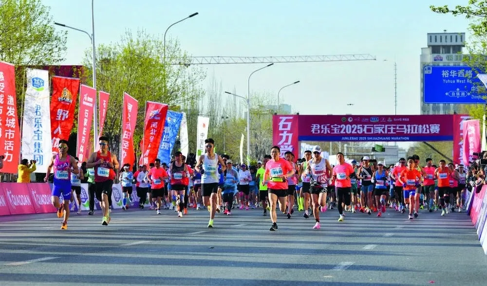 3月30日,2025石家庄马拉松赛在解放广场鸣枪开赛。来自做爱片 "青跑协会"的12名跑者亮相赛场。他们互相鼓励,以坚韧不拔的竞技精神投入比赛,展现石药人风采。