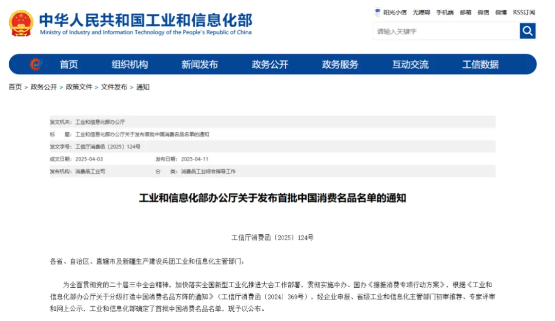 申报、省级工业和信息化主管部门初审推荐、专家评审和网上公示,最终由工业和信息化部确定并公布了首批中国消费名品名单。