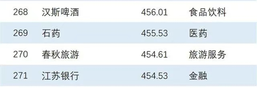 连续21年上榜,位列269位,品牌价值再获提升,达到455.53亿元,较去年增长提升11.7%。