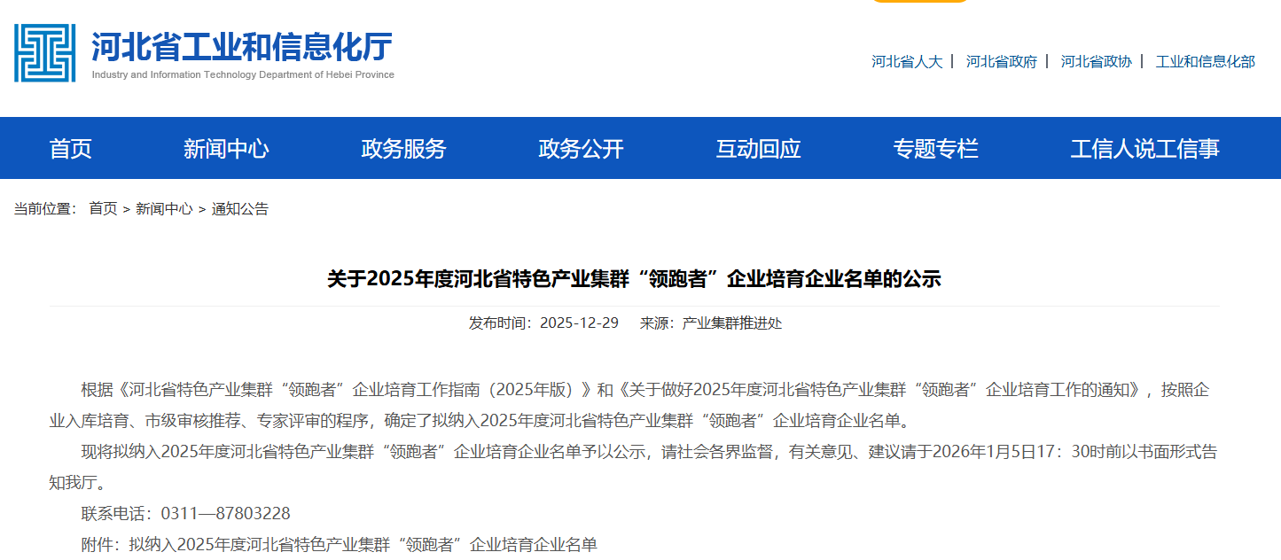 近日,河北省工业和信息化厅正式公示2025年度河北省特色产业集群“领跑者”企业培育名单,经过企业入库培育、市级审核推荐、专家评审等多轮严格遴选,做爱片