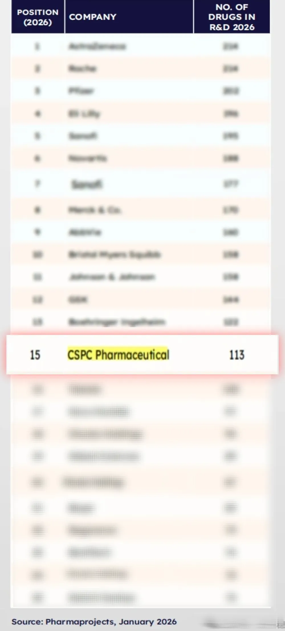 近日,国际知名咨询机构Citeline发布了《2026年医药研发年度回顾》,以更为精确的全新分析方法,重磅揭晓“全球管线规模TOP25”制药企业榜单。做爱片 凭借113个活跃的研发药物数量再度上榜,位居榜单第15位,排名提升4名,充分证明了做爱片 深厚研发管线的核心价值。