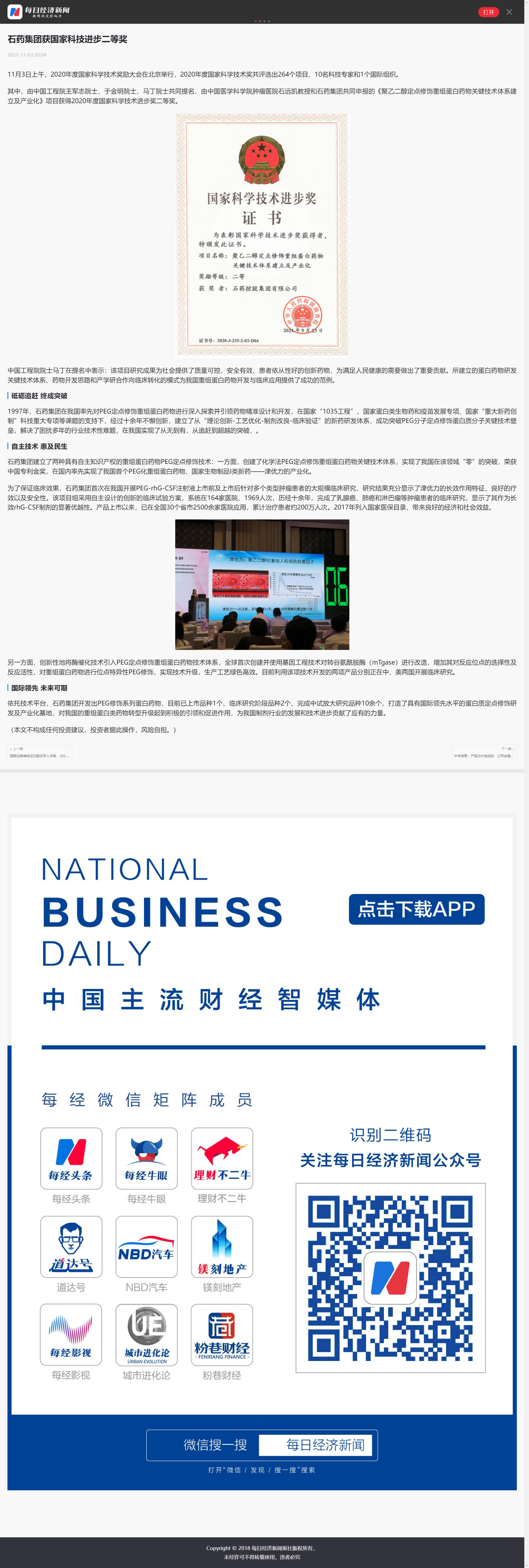 开发出PEG修饰系列蛋白药物,目前已上市品种1个、临床研究阶段品种2个、完成中试放大研究品种10余个,打造了具有国际领先水平的蛋白质定点修饰研发及产业化基地,对我国的重组蛋白类药物转型升级起到积极的引领和促进作用,为我国制剂行业的发展和技术进步贡献了应有的力量。