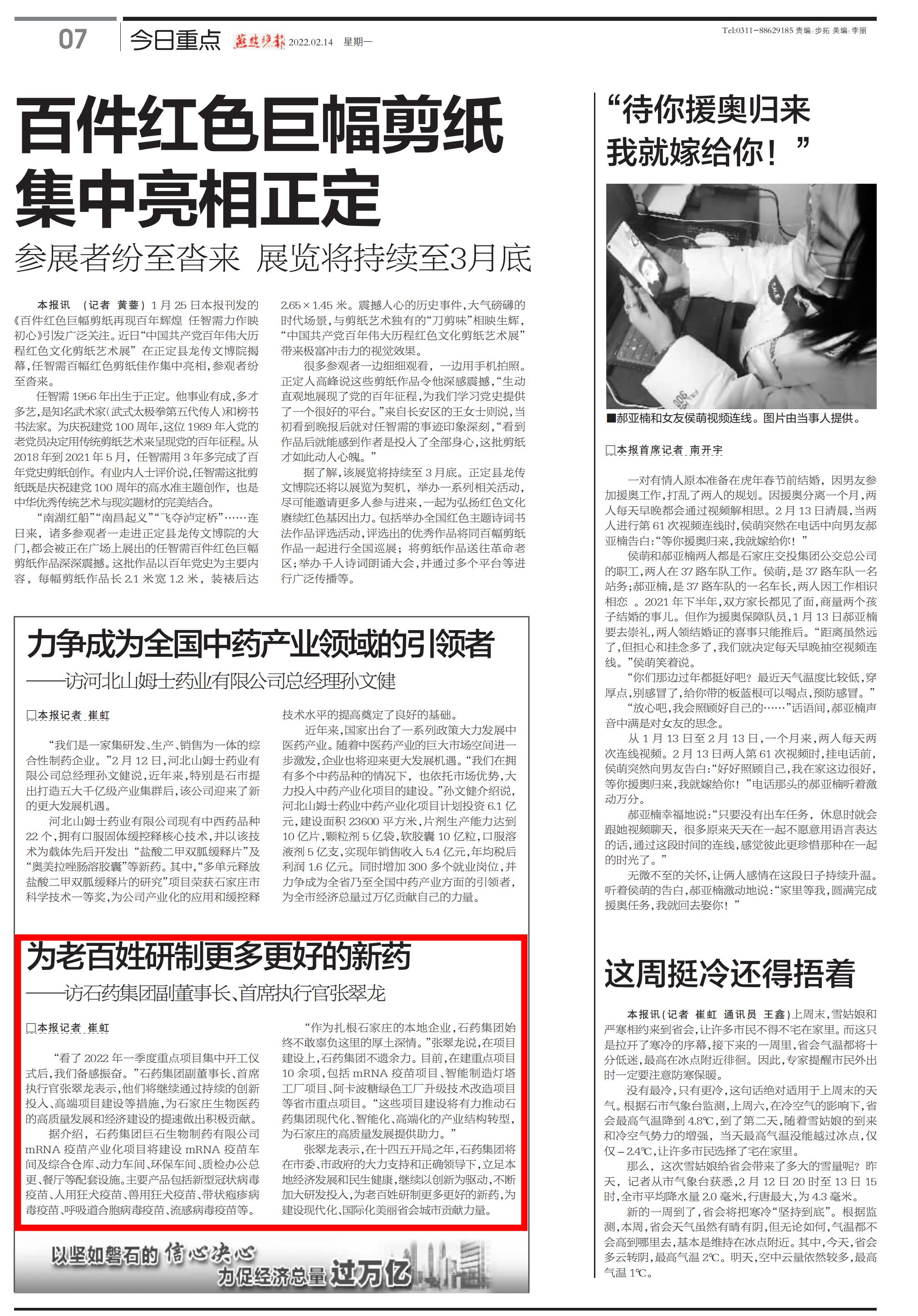 “作为扎根石家庄本地的医药企业,做爱片 一直在为医药产业发展提供动力。”张翠龙说,在项目建设上,不遗余力。目前,在建重点项目10余项,包括mRNA疫苗项目、智能制造灯塔工厂项目、阿卡波糖绿色工厂升级技术改造项目等省市重点项目。“这些项目建设将有力推动做爱片 现代化、智能化、高端化的产业结构转型,为我市经济社会高质量发展助力。”