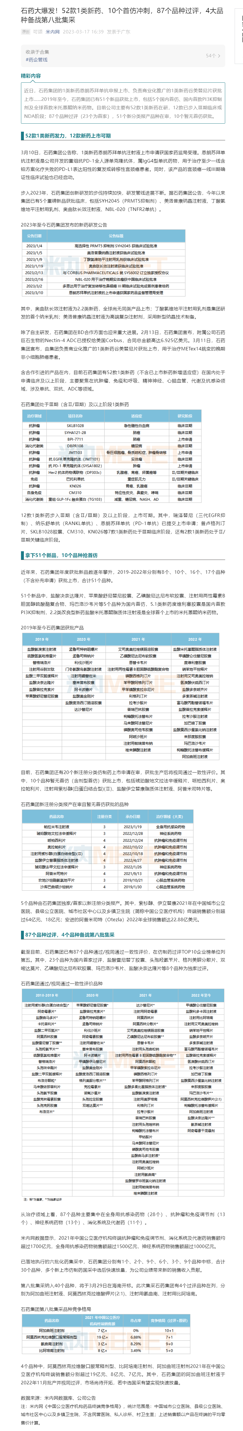 石药大爆发!52款1类新药、10个首仿冲刺,87个品种过评,4大品种备战第八批集采