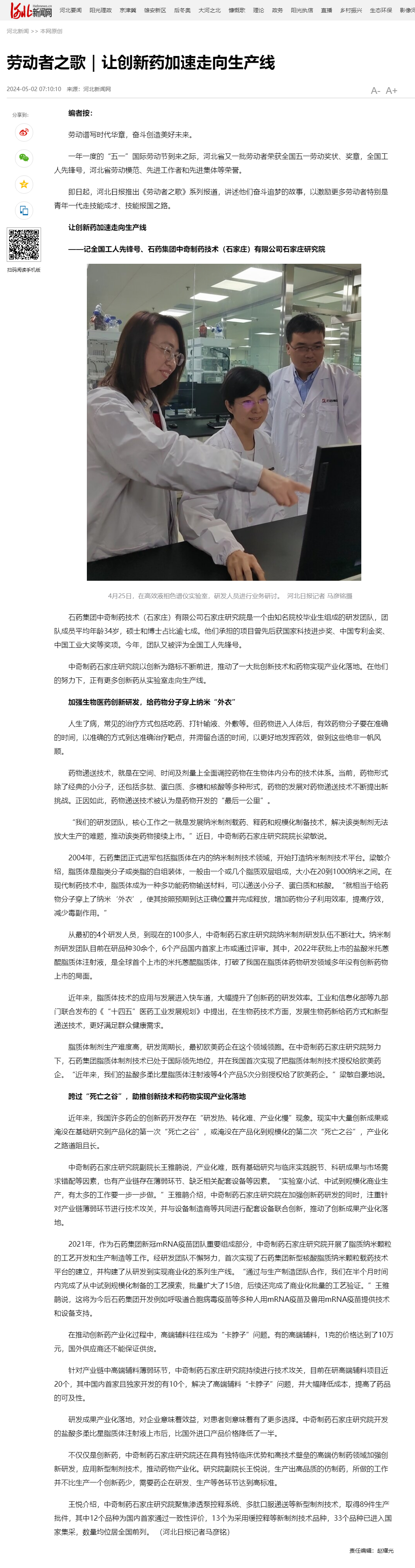 劳动者之歌|让创新药加速走向生产线——记全国工人先锋号、做爱片 中奇制药技术(石家庄)有限做爱片石家庄研究院