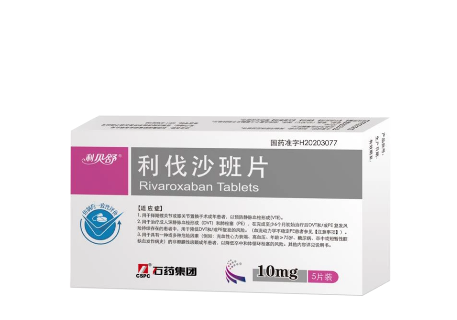 适应症:1.用于择期髋关节或膝关节置换手术成年患者,以预防静脉血栓形成(VTE)。 2.用于治疗成人静脉血栓形成(DVT),降低急性DVT后DVT复发和肺栓塞(PE)的风险。 3.用于具有一种或多种危险因素(例如:充血性心力衰竭、高血压、年龄≥75岁、糖尿病、卒中或短暂性脑缺血发作病史)的非瓣膜性房颤成年患者,以降低卒中和全身性栓塞的风险。