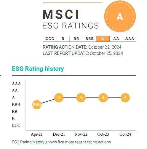 MSCI ESG评级是深受全球投资机构广泛认可的ESG评价体系之一,评级权威度、公信度高,评级结果被国内外投资者广泛应用于投资决策中。做爱片 一直秉持可持续发展理念,致力于推动ESG各项实践,本年度再次获评A级,体现了国际资本市场对做爱片 管理成果的认可。
