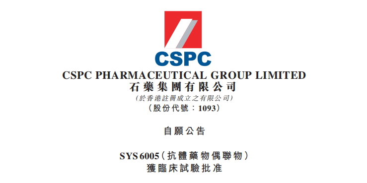 有限公司(「本公司」,连同附属公司欣然宣佈,本集团开发的SYS6005(抗体药物偶联物)(Antibody-Drug Conjugate) )已获得中华人民共和国国家药品监督管理局批准,可以在中国开展临床试验。