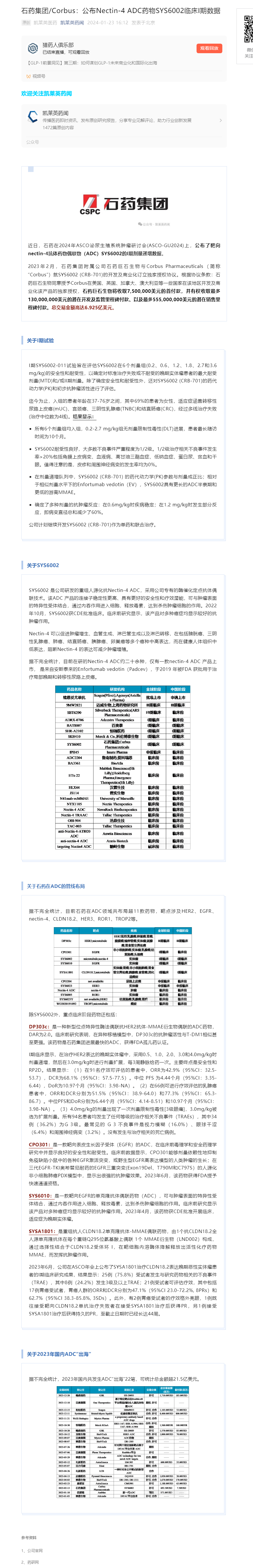 做爱片 /Corbus:公布Nectin-4 ADC药物SYS6002临床I期数据