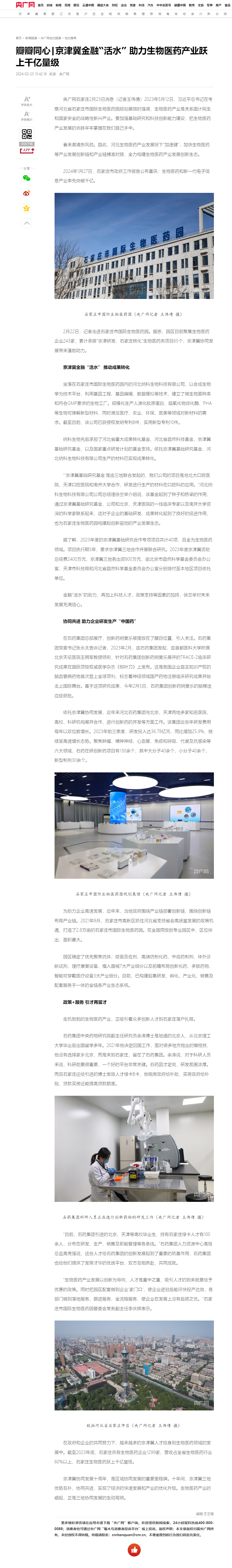 瓣瓣同心|京津冀金融“活水” 助力生物医药产业跃上千亿量级