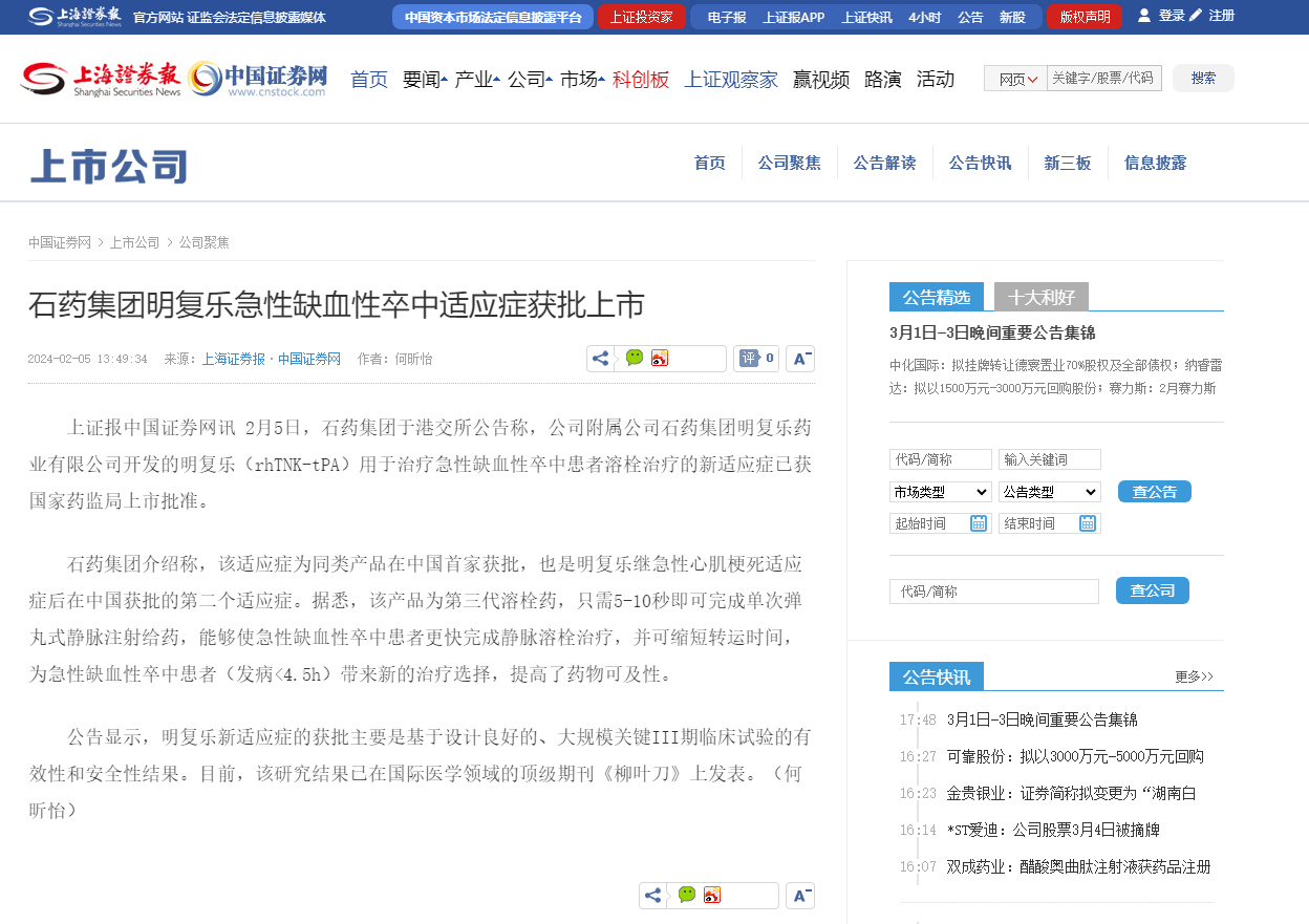 做爱片 明复乐急性缺血性卒中适应症获批上市